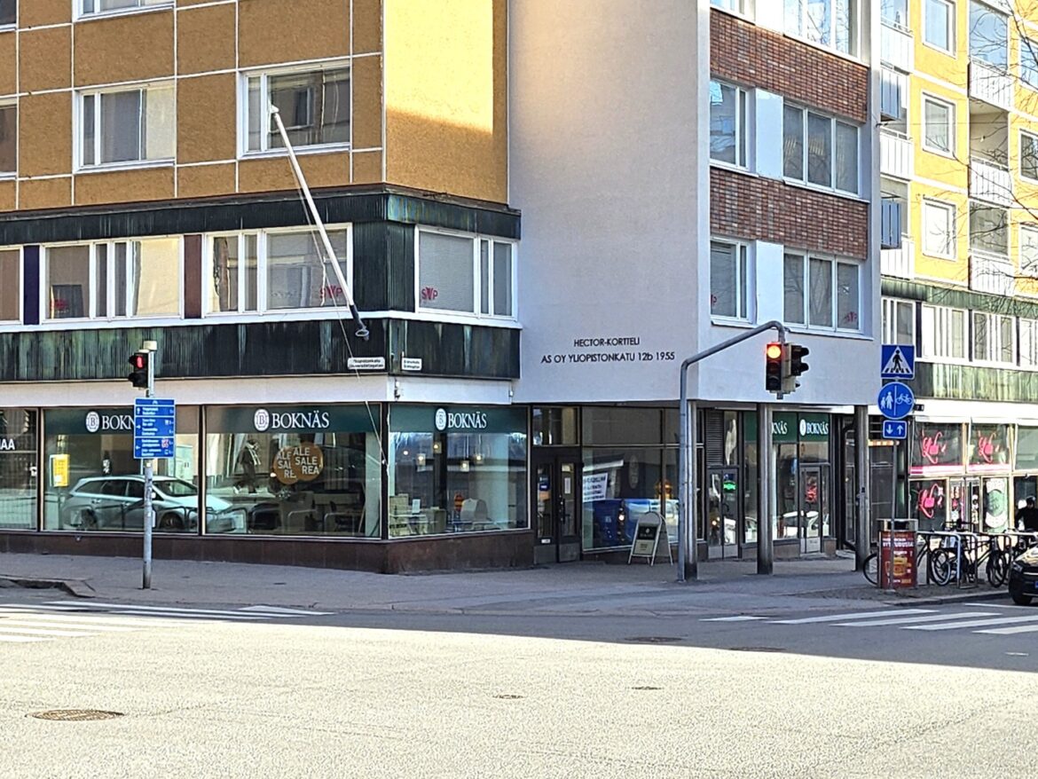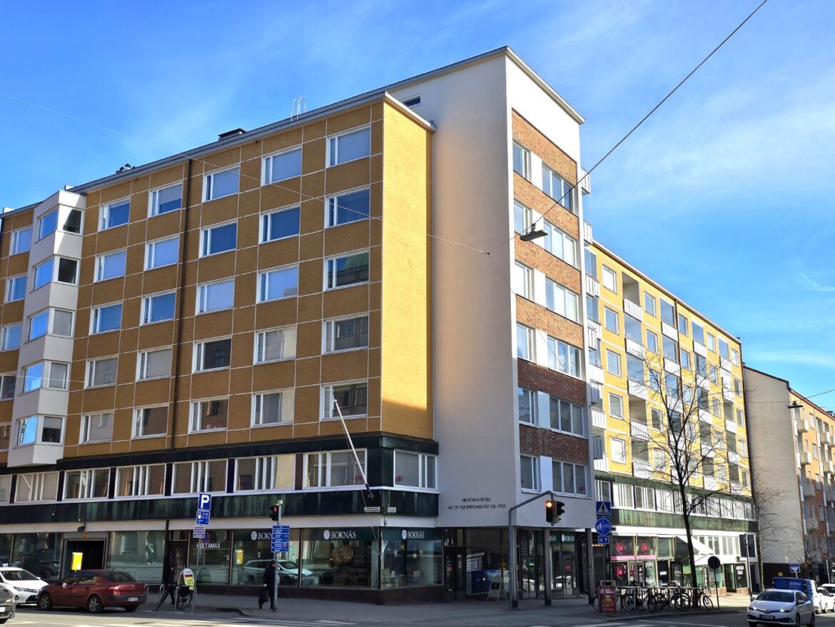 Ilmeikäs kulmahuoneisto vilkkaasti liikennöityjen Brahenkadun ja Yliopistonkadun kulmassa.
